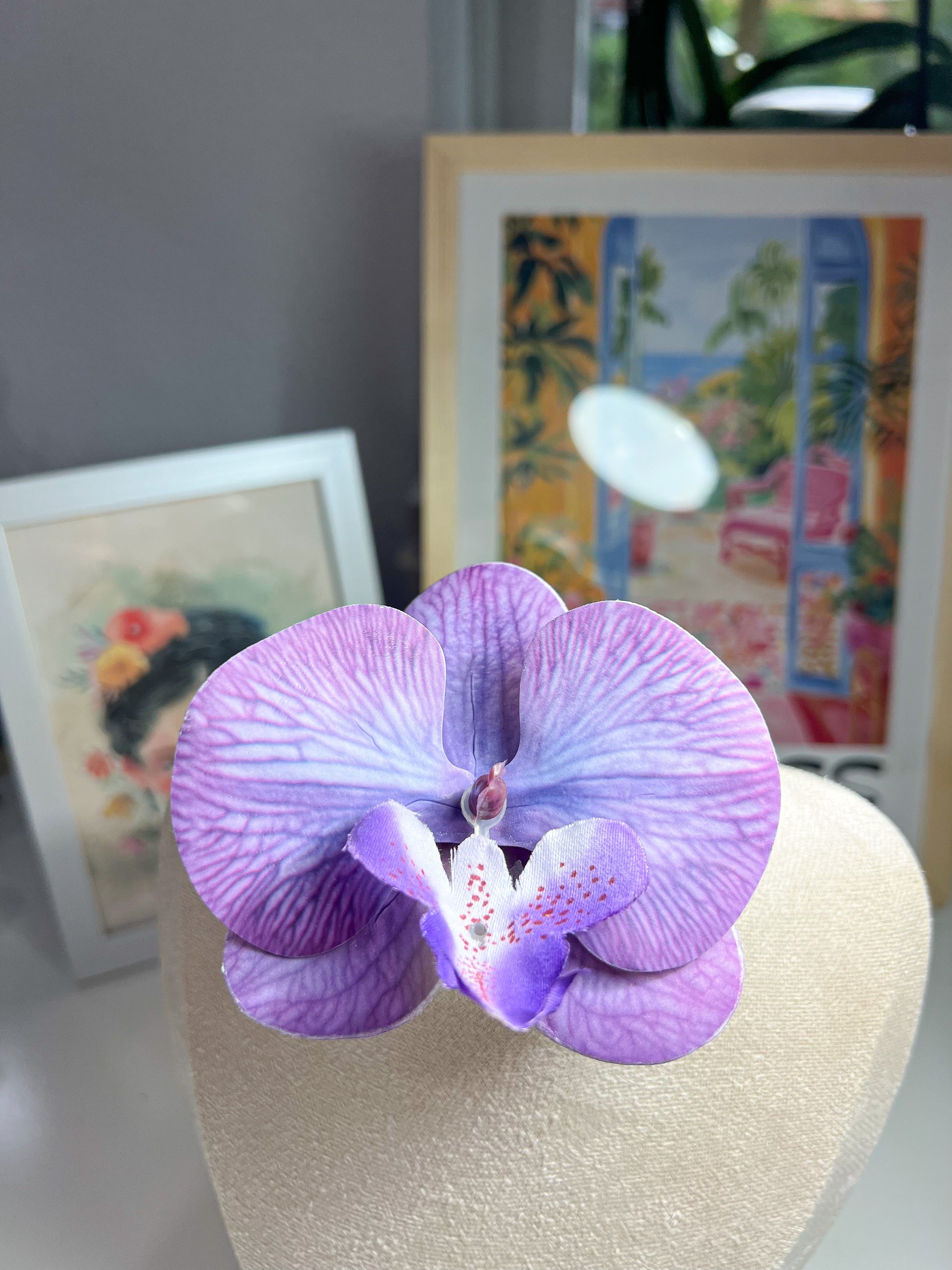 Este delicado clip con una orquídea artificial combina belleza y practicidad, diseñado para realzar tu estilo en cualquier ocasión. Su acabado impecable y sus colores vibrantes imitan la frescura de una flor natural, pero con la ventaja de una durabilidad eterna.