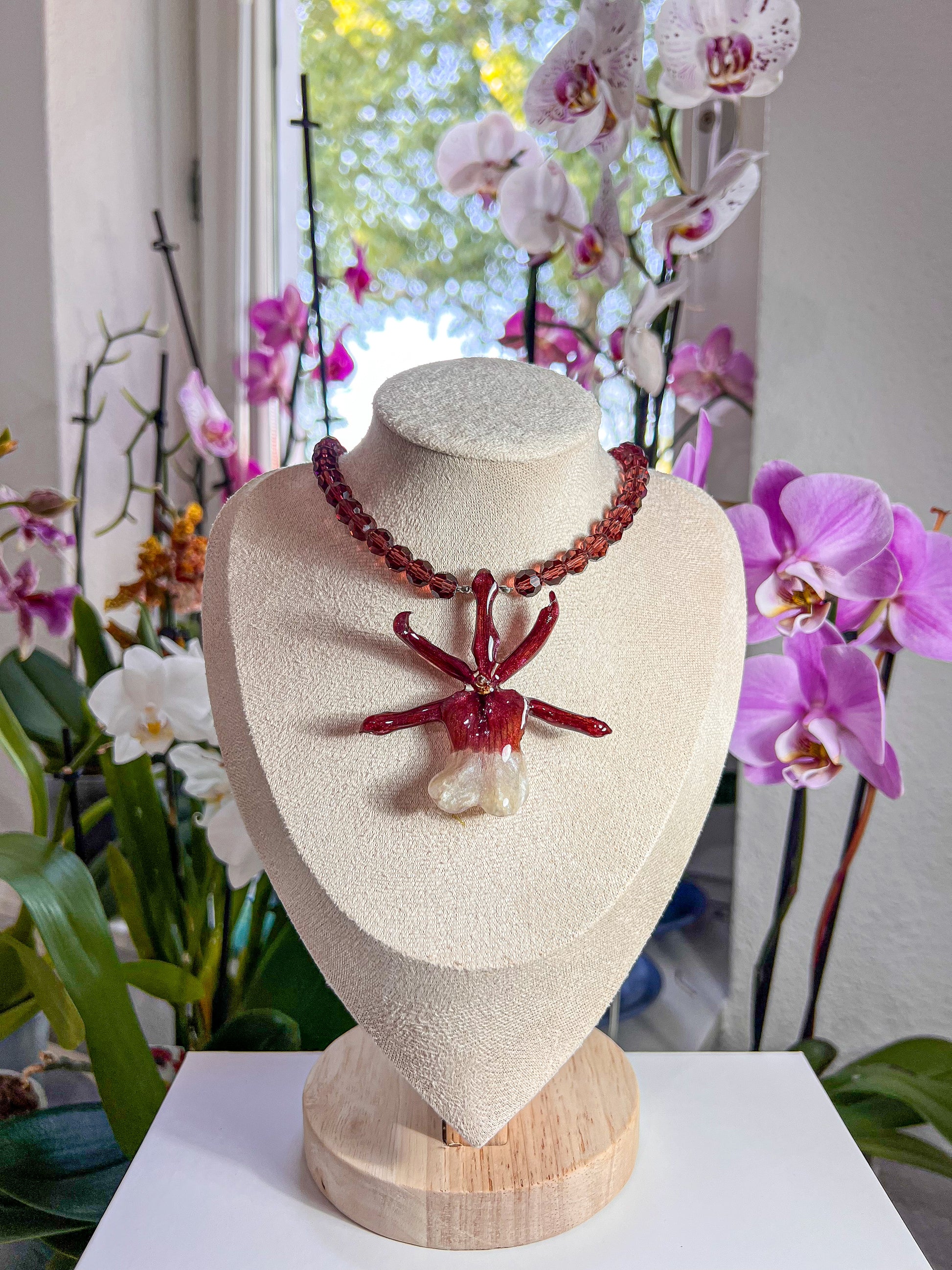 • 🌸 Flor natural: Orquídea Cambria Orchid, preservada y encapsulada en resina cristalina.